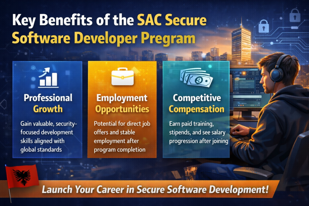 The SAC Secure Software Developer Program represents a standout job opportunity in Albania for anyone serious about building a future in secure software development. With its structured learning model, employment-focused approach, and alignment with global standards, it offers far more than a typical entry-level role.