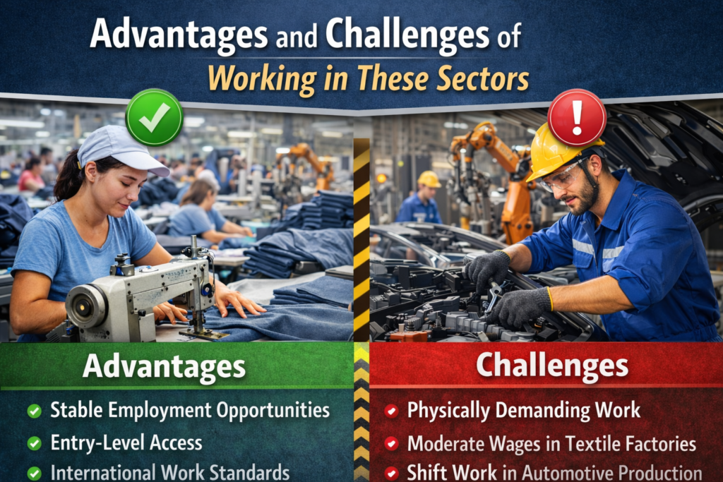 While textile jobs provide accessible entry points into the workforce, automotive parts manufacturing offers higher salaries, better career growth, and exposure to global production standards. With the right skills and expectations, both sectors can provide stable employment and long-term potential.